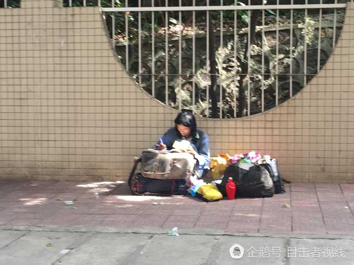 2017年1月24日上午,春节临近,笔者途径深圳街头,人车相比以前,少了很大,最令人注目的是坐在街头的一位流浪汉,好象在写着什么,这是笔者多次看到的场景,曾记得,2016年12月份的时候,他也是坐在路边认真写字,每次都看到他很认真练字。