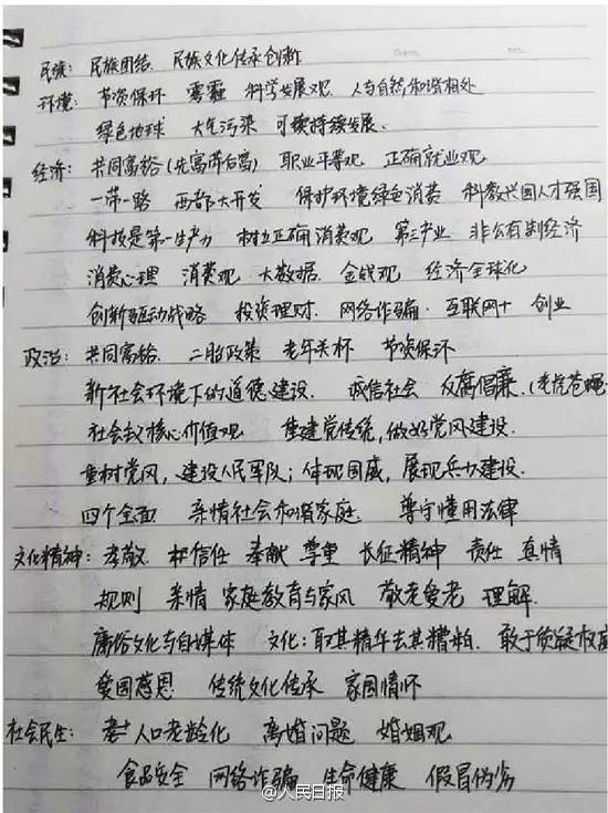 衡水中学学生总结出的春晚政治考点