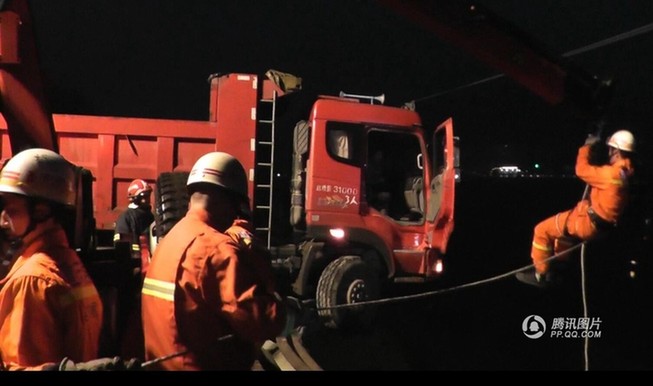 重庆大货车失控冲到悬崖边 消防“悬空”救人
