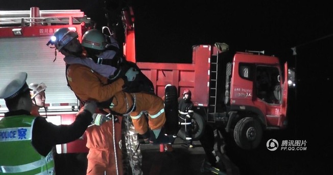 重庆大货车失控冲到悬崖边 消防“悬空”救人