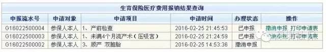 1、申报成功后可以通过“生育保险医疗费用报销查询”菜单查看办理状态。