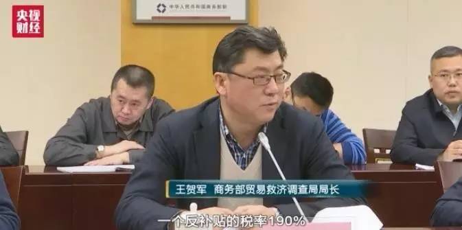 商务部贸易救济调查局局长王贺军:前两天刚公布不久的不锈钢板带(材)一个反补贴的税率190%,反倾销的税率76%,两个加起来260%多的税率。260%的税率我不相信哪一个产品上的盈利率达到260%多。实际上有个10%到20%就不错了。