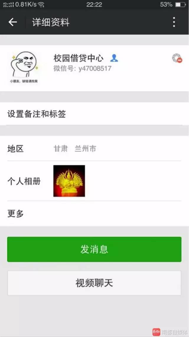 杨某的微信截图,显示为“校园借贷中心”。受访者供图,下同