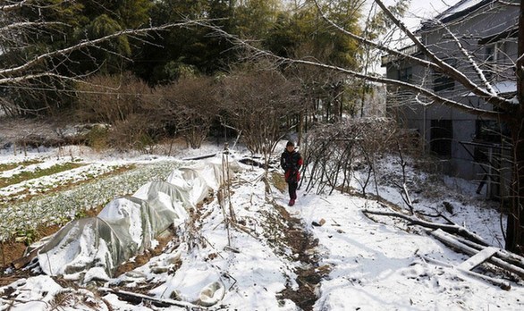 2017年安徽省岳西县石关乡,作文第二段:“ 我的妈妈叫汪义华,是石关乡大桥组的人,在我2岁的时候家里原本过着幸福的生活,可爸爸患了病,爷爷又中风半瘫,家里我和哥哥都在上学,开支很大,又没有多少收入,我们家重担就落在了年老的奶奶和妈妈身上”。图为小露露在屋后雪地上走来走去,她知道妈妈今天外出,又得过年才回来,对于一个年仅十岁的孩子,这是一个漫长的等待。