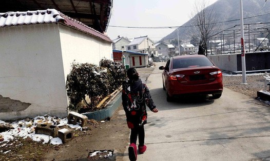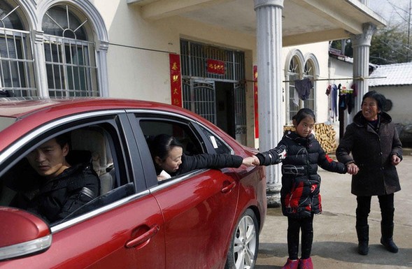 2017年2月9日,安徽省岳西县石关乡,车来了,露露紧紧拉着妈妈的手,久久不愿松开......