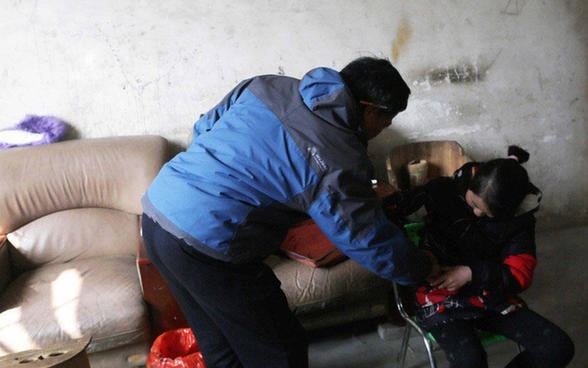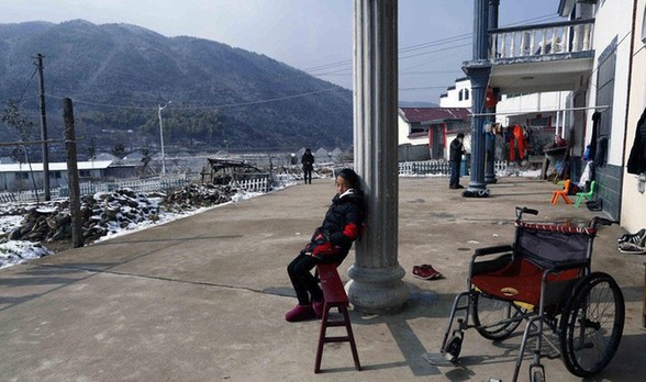 2017年2月9日,安徽省岳西县石关乡,午饭时,露露迅速扒拉几下,独自坐屋内一声不吭,客人给她压岁红包,她也不想收下。