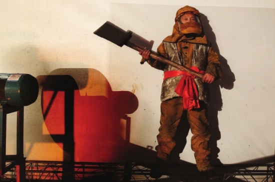 2月5日,长沙橘子洲头,艺人打铁花时穿的保护服。