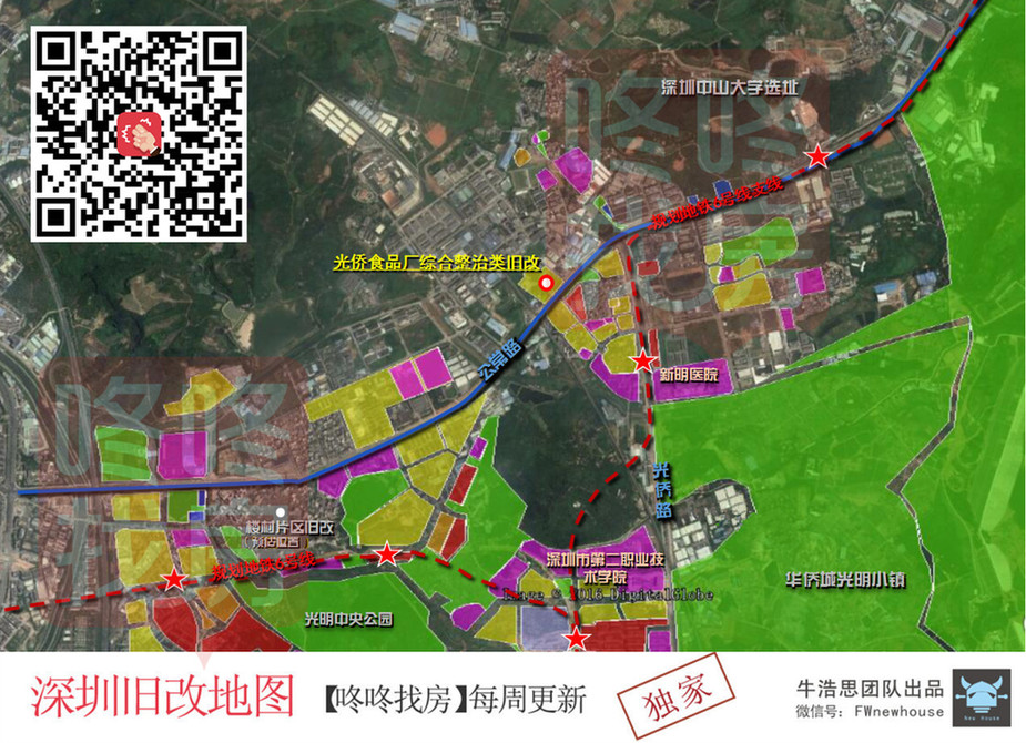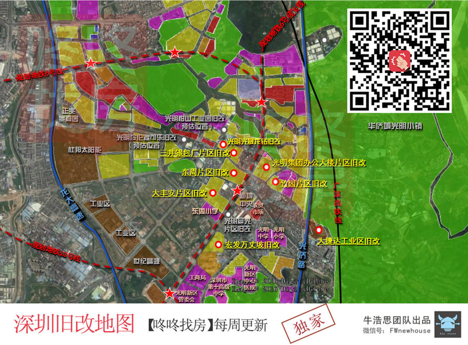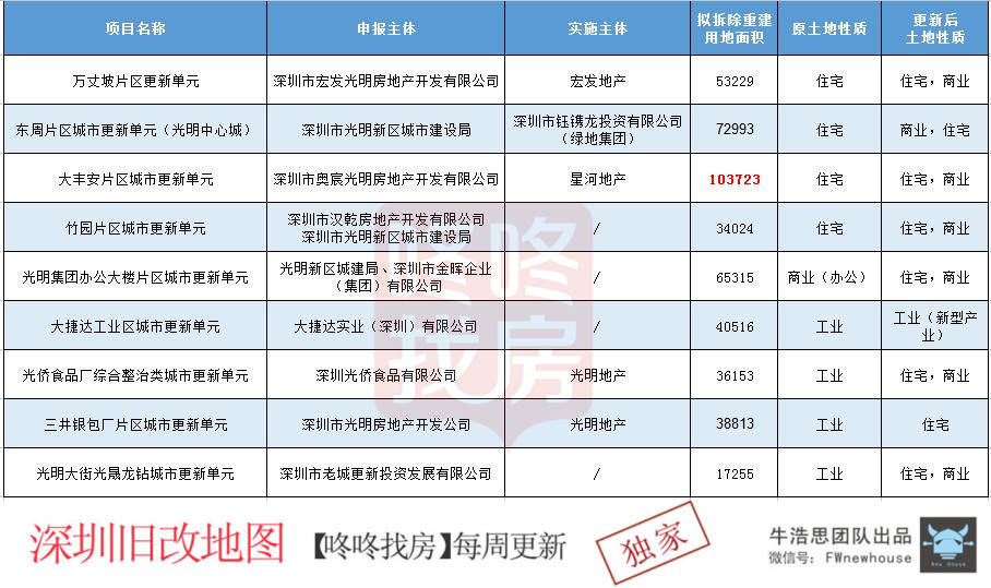 由牛浩思数据库录得,目前光明新区公明街道约9个旧改项目(含在建未入市项目),拆除重建建设用地总面积约82万平米。