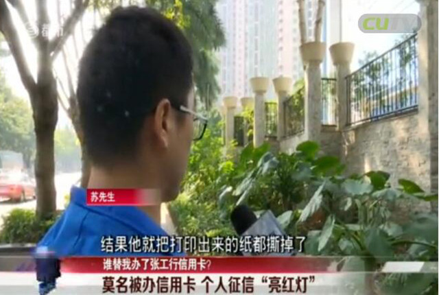 本月7号,苏先生收到建设银行发来的短信提醒,内容提到自己的个人征信出现了问题,无法正常使用建行的信用卡,但是经苏先生查询,问题竟出自一张自己从未办理过的工商银行信用卡。得知这件事情之后,苏先生立即拨打了工商银行客服电话,他这才了解到,这张被莫名办理的信用卡的开户行,是中国工商银行深圳红围支行。但是当苏先生前往这家支行进行申诉时,新的问题又来了。