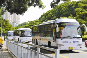 多趟优点巴士行驶在路上。深圳晚报记者 刘菲菲 摄