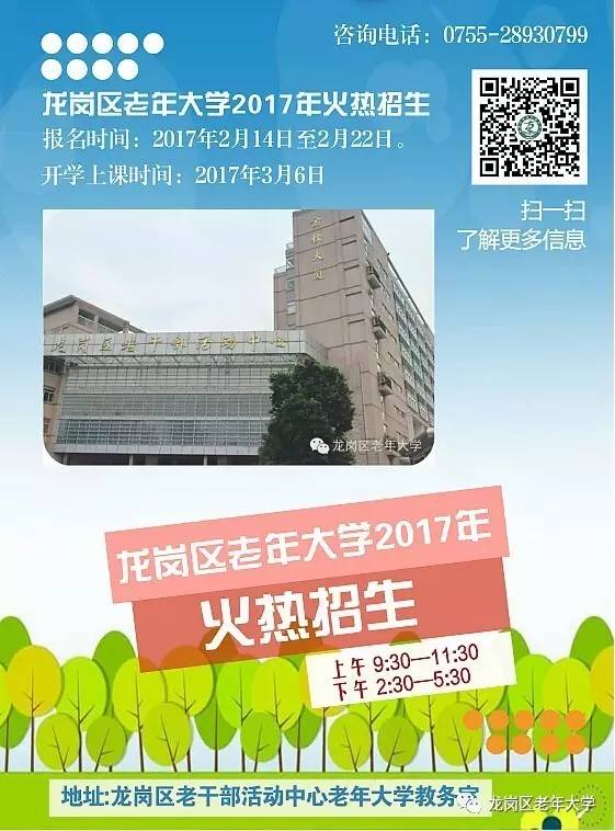 2017学年度将开设声乐合唱、形体、摄影(本学年新开设专业)、电脑、英语、声乐、国画、书法、太极、木兰、民族舞、客家山歌、京剧、交谊舞、诗词、剪纸、布艺、手风琴、民乐、模特等20个公益性免费教学专业。(本学年度合唱指挥班暂不招生)