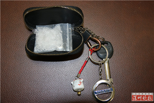 近日,深圳铁路公安处深圳福田站派出所民警带领安检员在车站开展安检工作时,发现一名男子神情紧张,形迹可疑,便上前对其进行询问。该男子支支吾吾,答非所问。民警对其仔细检查,注意到对方手里好像攥着一个东西。民警让他将手中的物品交出来接受检查。该男子嚷道:" 不就是一个钥匙扣件吗,有什么好查的。" 民警拿过钥匙扣件仔细一看,发现钥匙扣件可以拧开,里面居然藏了一小包毒品 " 冰毒 ",净重 0.6 克。该男子见状,吓得脸色发白。民警立即将该男子控制,又从其携带行李箱内的夹层里搜出一个钥匙包,包内藏有毒品 " 冰毒 "7.6 克。民警将该男子带到派出所进行审查。