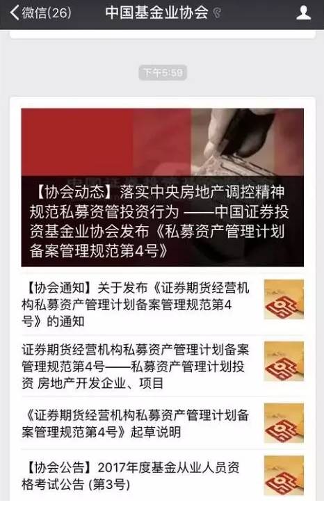 昨日(2月13日)晚间,中国基金业协会(以下简称协会)通过官方微信发布《证券期货经营机构私募资产管理计划备案管理规范第4号-私募资产管理计划投资房地产开发企业、项目》(以下简称“4号文”),对私募资产管理计划投资于房地产价格上涨过快的16个热点城市普通住宅地产项目、向房地产开发企业提供融资,用于支付土地出让价款或补充流动资金等行为进行了规范。