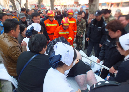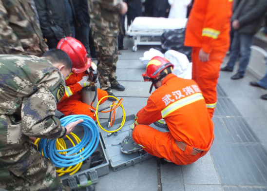 中午12时15分左右,汉正街消防中队6名消防官兵赶到现场。由于小黄之前在住院,为防止发生意外,湖北省第三人民医院急救中心陈莉等10名医护人员也赶到现场,还给坐在地上的小黄上了氧气设备。“要不用吊车吧。”现场有人议论道。考虑到此方案不人性化,现场民警予以否决。众人与小黄母亲商议道:此前,小黄一直在住院治疗,这回摔倒了又折腾了这么久,恐怕还是得回到医院接受治疗、检查。