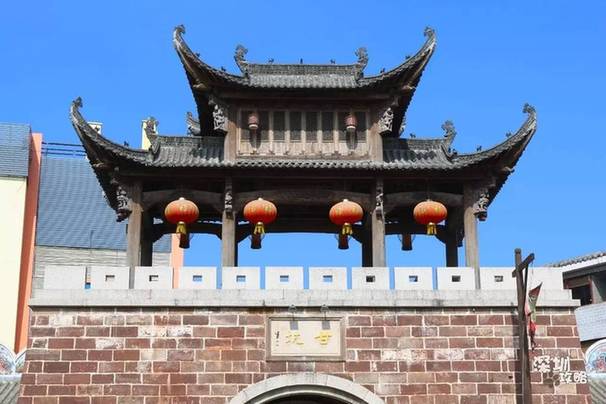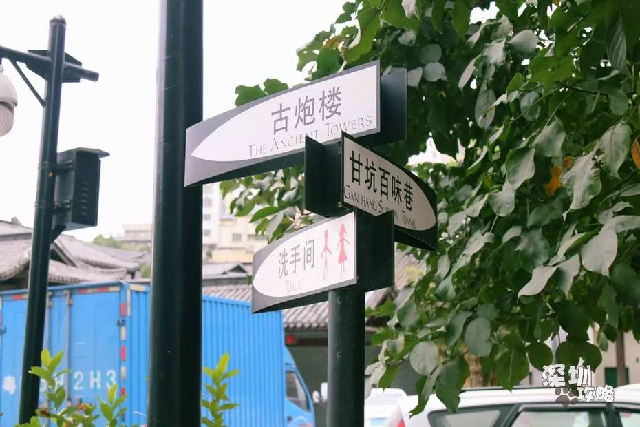 这个地方没有地铁直达,需要转乘公交到达“甘坑村委站”下车即可。映入眼帘的是一道雄威的城墙,灯笼高挂,甘坑二字泛着耀眼的金黄色。仿佛在诉说三百五十多年前这里是多么的繁荣昌盛。