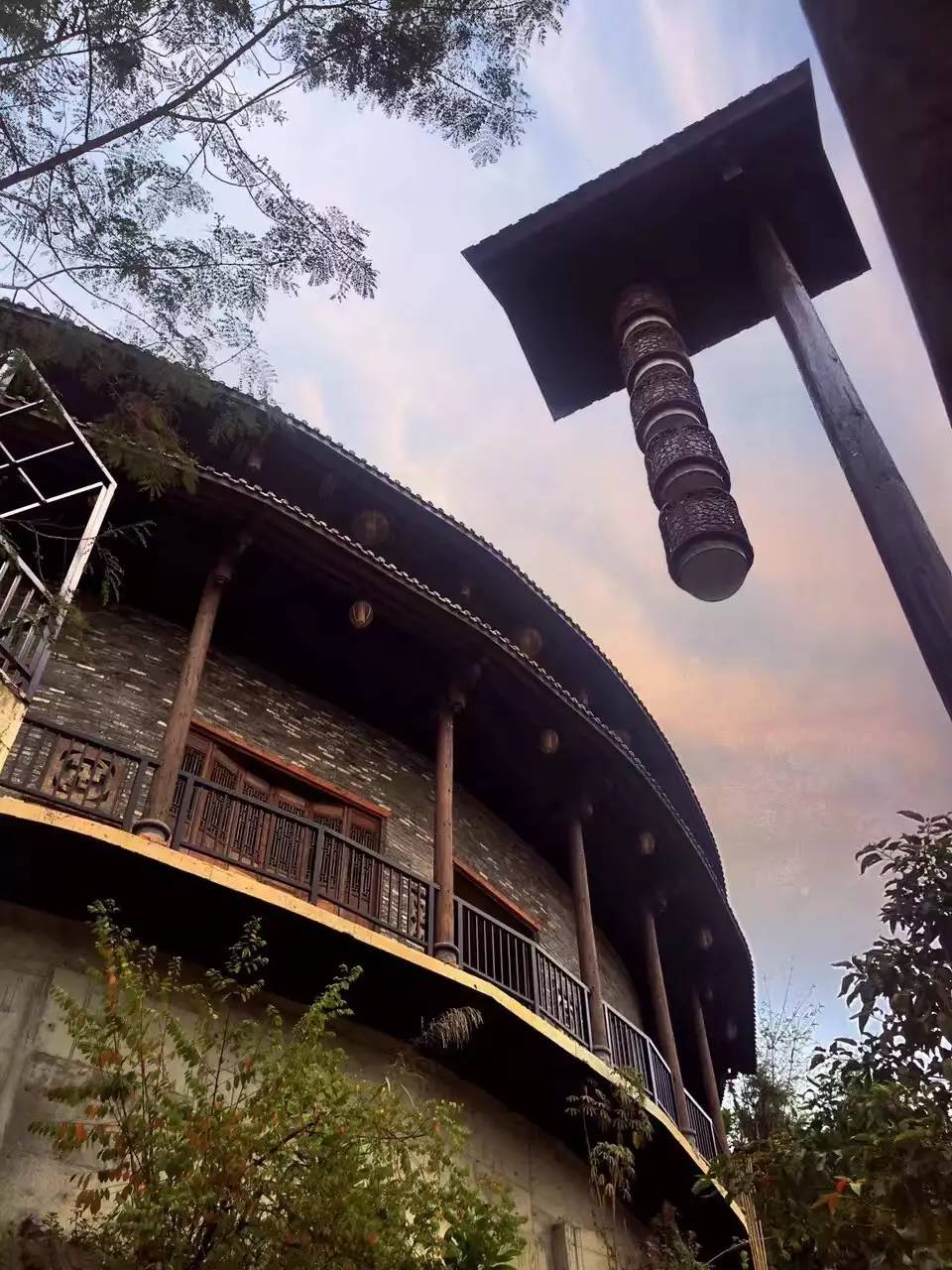 最让小编惊喜的是在这里遇见《大鱼海棠》电影里的“福建土楼”,未进入之前,在外面看到半个房子,成圆形,有三层,每隔几米有实木柱子支撑,灯笼遍挂。