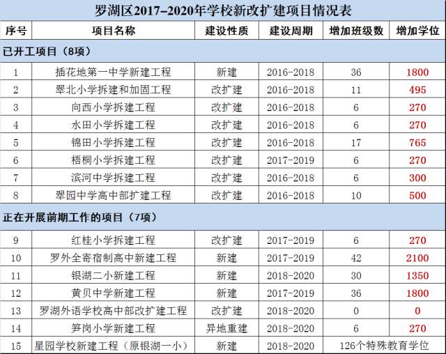2017年,罗湖区有8个学校建设项目进行主体工程建设,分别为: