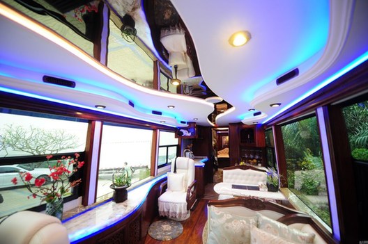 2017年2月15日,海南省三亚市,14米长房车亮相三亚,造价约800万。据悉,该车装饰由黄花梨、玉石构成,车内配有车载通讯卫星、超级影院、卫生间、开方式厨房等,一个1.9米长的大床及一个立式上下铺及组合客户沙发,可满足一起7人出游。据悉,该车目前在国内属最大。图/东方IC
