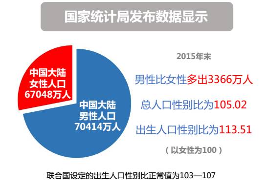 “我国已经历近30年的出生人口性别比偏高且持续攀升过程,据保守估计,未来30年将有大约3000万男人娶不到媳妇。”中国人民大学人口与发展研究中心主任、中国人口学会会长翟振武表示。相关数据也显示,男女比例目前严重失衡,最近几年表现得越来越明显。