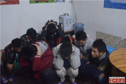 (警方在屋内查获的疑似传销组织人员)