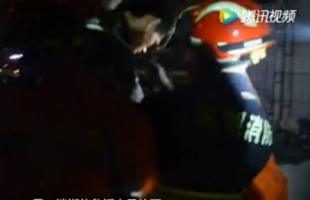 (消防人员正在解救被困男子)