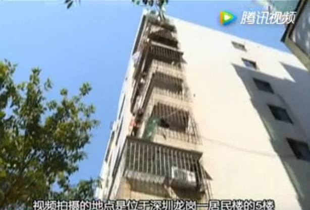 从消防部门提供的视频里可以见到,在一间屋子的阳台外面,一名男子身处防盗网外,双手双脚都伸进室内,屁股悬空在外。视频拍摄的地点是位于深圳龙岗一居民楼的5楼,而且民警及消防到达的时候,已经凌晨快两点了。