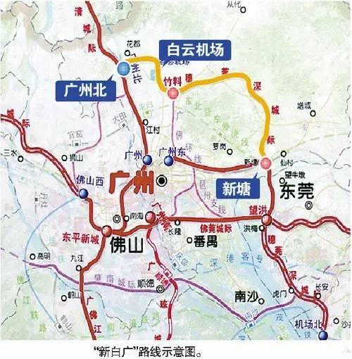 据广东省规划,拟投资100亿将广州北站打造成亚太地区超大型综合交通枢纽。新白广城际铁路工程建成后,直接通联机场和广州北站。