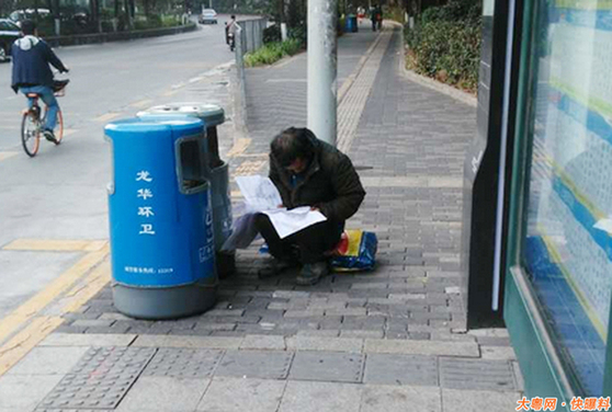 励志!深圳拾荒男子垃圾桶旁看试卷