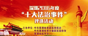 昨日,深圳2016年度“十大法治事件”评选20件候选事件正式出炉。该评选活动由市委政法委、市依法治市办公室、深圳市法学会主办,旨在展现深圳一流法治城市建设的特色和亮点,弘扬法治精神,营造全社会崇尚法治、践行法治的浓厚氛围。