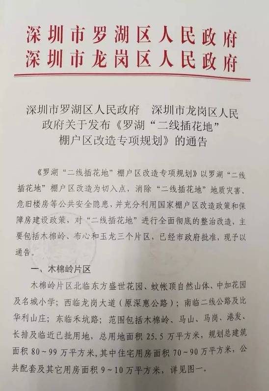 深圳市罗湖区人民政府 深圳市龙岗区人民政府关于发布《罗湖“二线插花地”棚户区改造专项规划》的通告