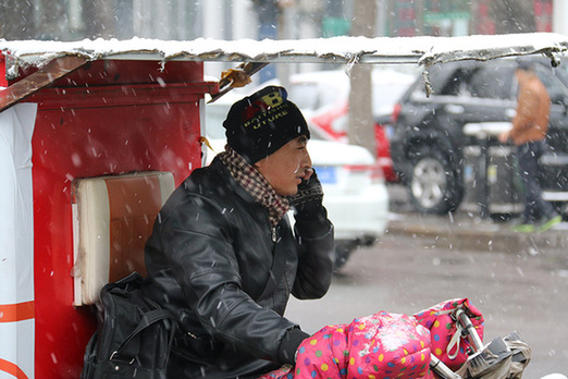 实拍:北京今日(21日)迎来大雪 快递员坚守一线