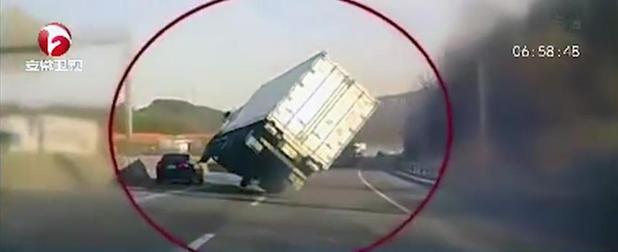 据安徽卫视报道,近日,一辆超高货车为了不撞上高速公路上的指示牌,司机便猛打方向盘,在高速公路上玩起了车技。