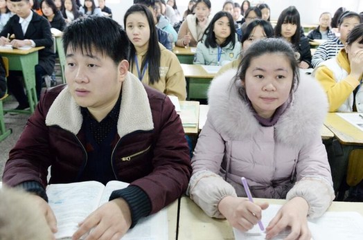 在学校上课的“学生夫妻”。