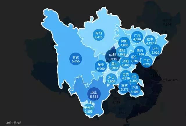 成都房价为8800元/平方米全省最高,其他各地房价在3000-5000元/平方米之间。
