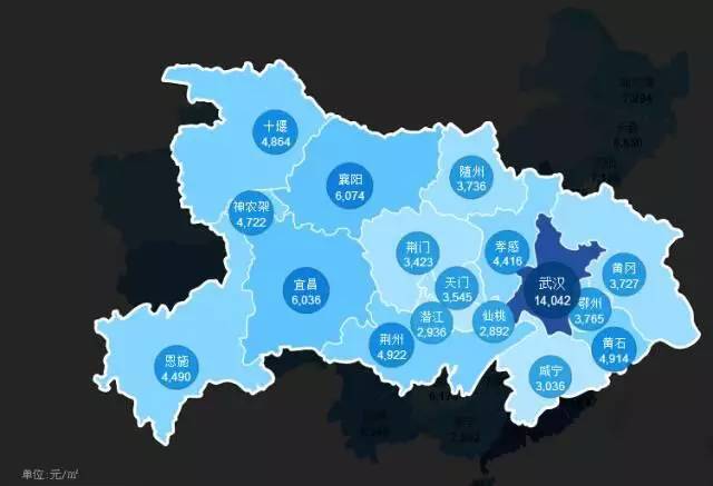 武汉房价为14000元/平方米,其他城市在3000-6000元/平方米之间。