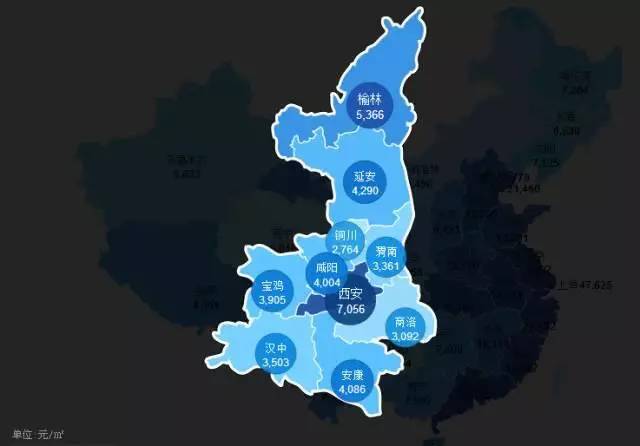 整体房价跟山西很像,最高的为西安7000元/平方米,其余地区均价为4000元/平方米。