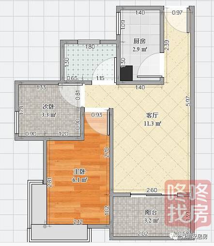 大开间,采光优秀,主卧朝向可调整到东南或西南,厨房大小尺寸稍有不足,但对于64平米公租房如此格局已属不易。
