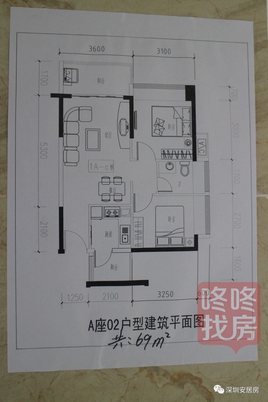 A座02户型 建筑面积69㎡ 两房一厅一卫