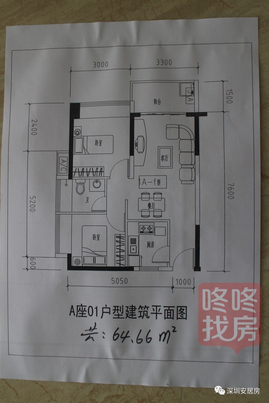 项目主力户型之一,结构和A-1类似,但窗口方向大多并非小区内。
