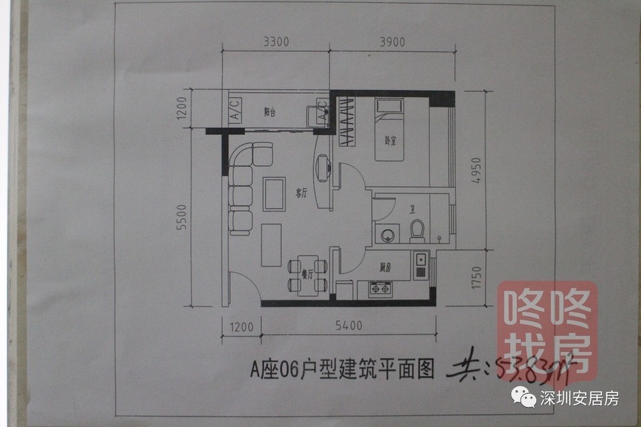 A座06户型 建筑面积53.83㎡ 一房一厅一卫