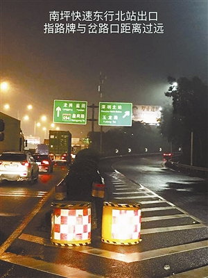 同时,在部分路段的出口处,指路牌在较后的位置,这也需要司机提前在分岔路口做出选择。记者在南坪快速东行北站出口看到,指路牌在岔路口后方,进入路口前司机就应该及时变道,否则容易错过方向。