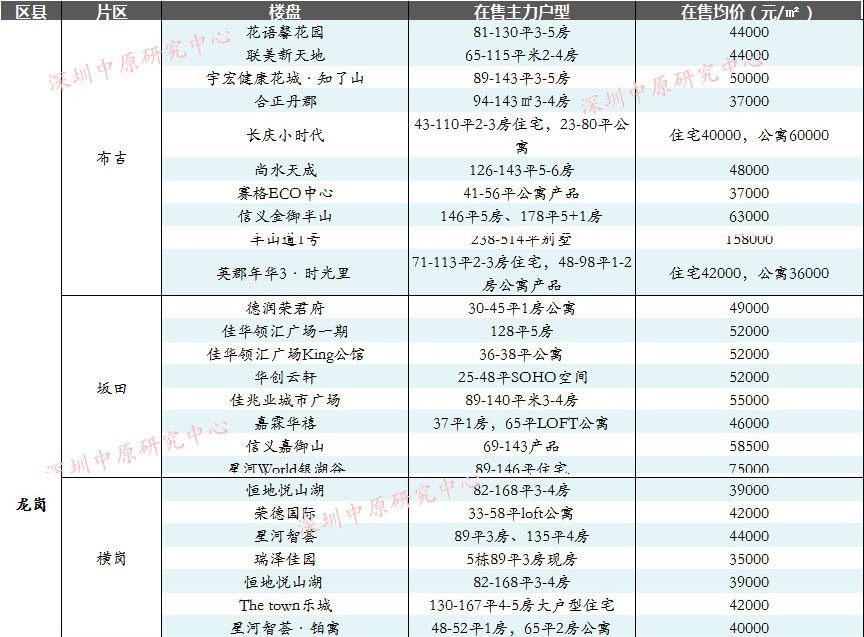 其中龙岗和宝安的楼盘共73个,几乎占了全市供应的一半。
