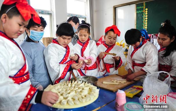 2月28日,济南明湖小学的学生们着古装制作传统美食。当日,在济南明湖小学举办的“民俗文化节”上,学生们着古装制作传统美食,用“舌尖”感知中国传统文化。