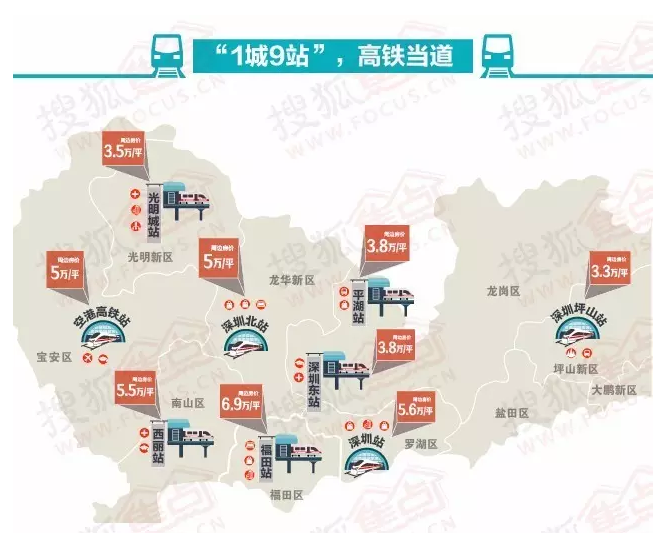 而在深圳十三五规划的9个站点中,除了深圳站和深圳东站外,其余7个在未来都是以高铁站的形式存在。