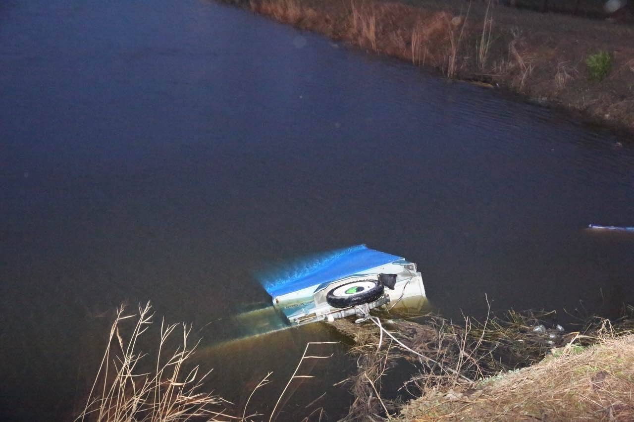 爷孙三人连人带车被风刮到鱼塘中