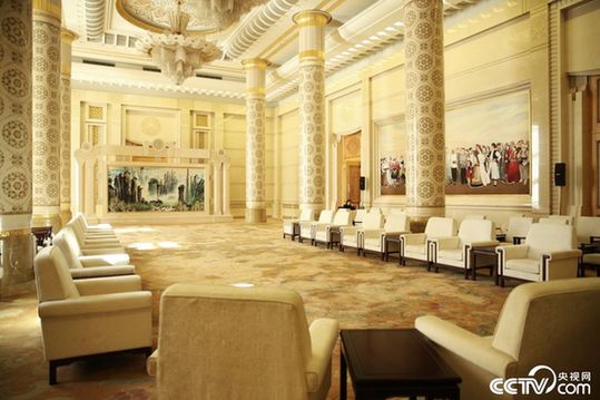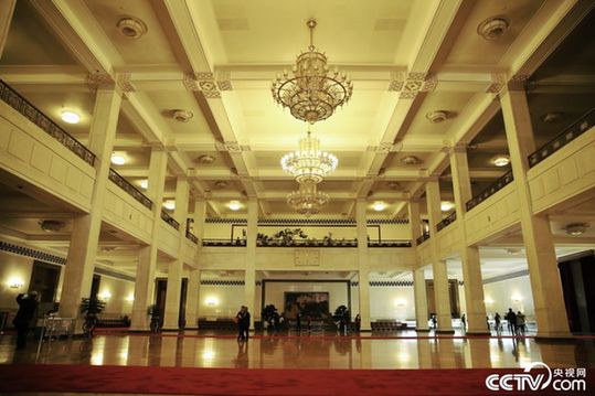 2月23日,北京,人民大会堂静待全国两会的召开。据悉,为了准备迎接会议的召开,明日将是人民大会堂最后一天对外开放。图为上海厅。李夏 摄