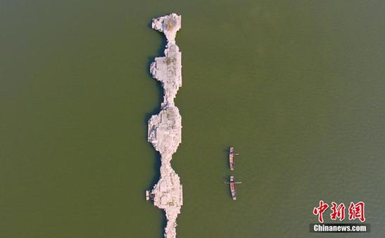 江西仙女湖水位下降 露出万年古桥