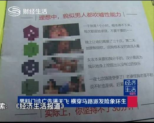 派完刊物,男子就在启动的车流中肆意横穿,场面险象环生。记者仔细阅览,他们派发的刊物“男神”,写有各种让人脸红的词汇,并配大量醒目的图片,以此吸引读者的兴趣。