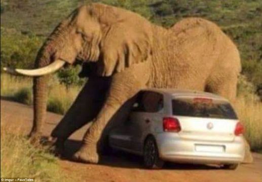 这张照片是在南非的Pilanesburg国家公园拍摄的,这头淘气的大象正在用汽车给自己挠痒痒。