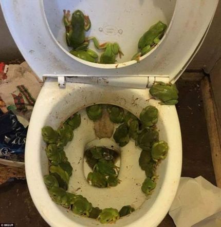 这张照片据说是游客在赶上洪水之后拍摄的,满厕所的青蛙确实很令人难忘。